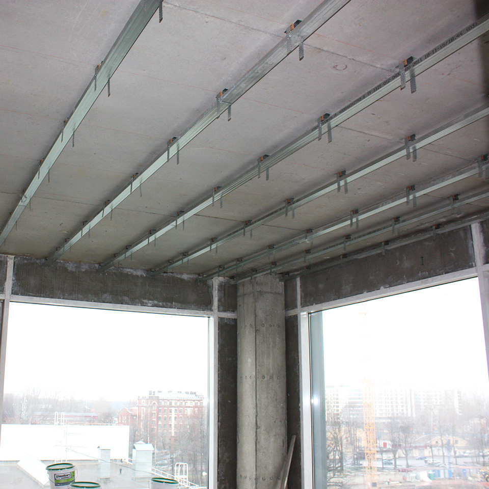 Помещение караоке-клуба находится на первом-техническом этаже, на втором этаже расположены коммерческие помещения и магазины, но жалобы на шум от музыки и пения, владельца каракоке-клуба получали от жильцов с третьего и даже четвертого этажа. На первом этапе было принято решение сделать полную шумоизоляцию потолка на вибронезавизимом каркасе с применением виброподвесов. Это дало результат и жалоб от жильцов дома больше не поступало.