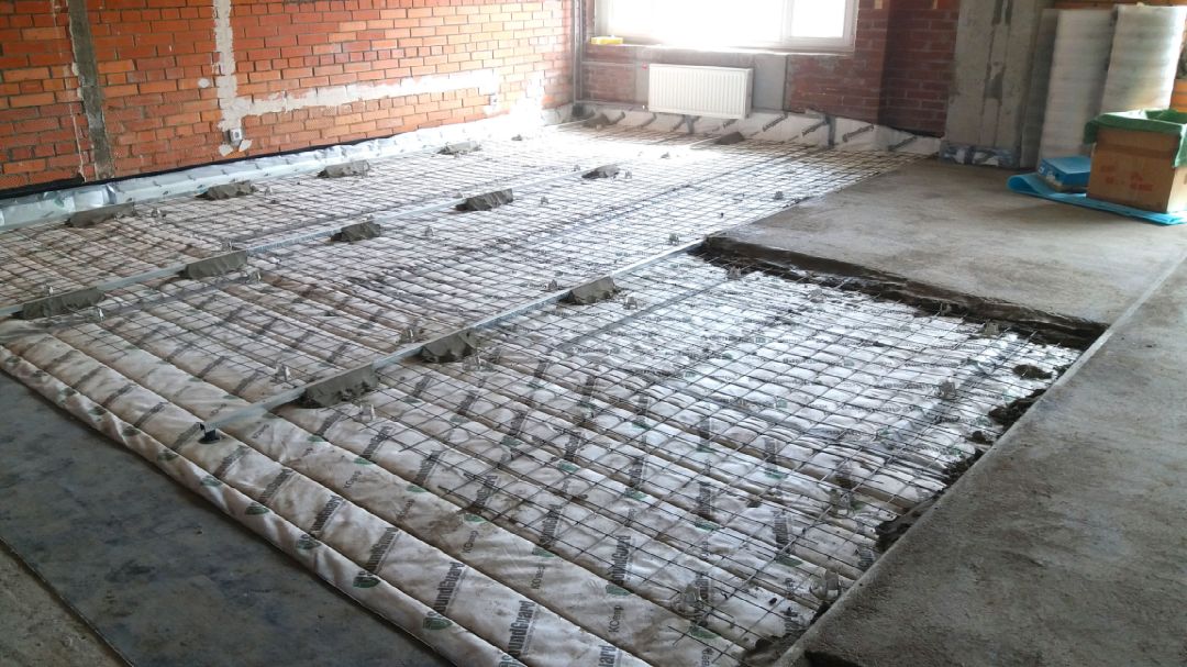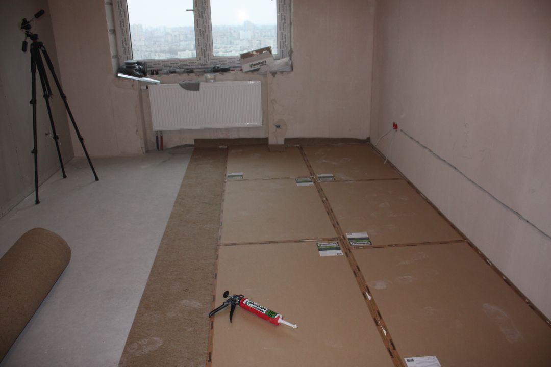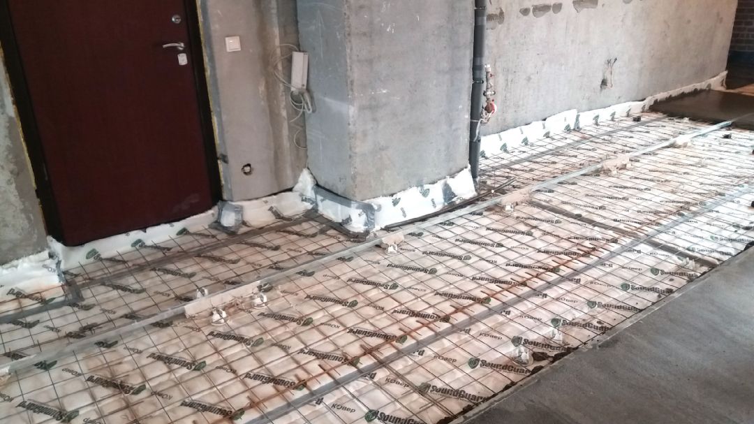 Сделана звукоизоляция под стяжку пола с помощью звукоизоляционный мат SoundGuard изоКОВЕР