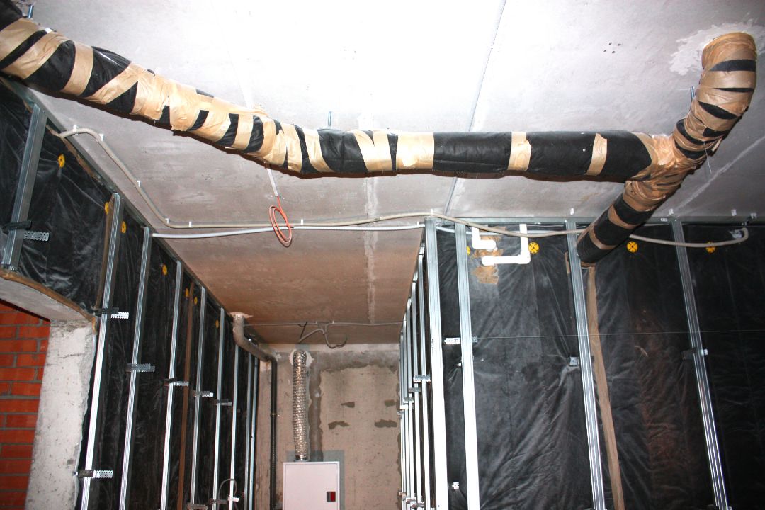Выполнена шумоизоляция стен и потолка в полуподвальном помещении многоквартирного дома в котором располагается танцевальная студия для детей