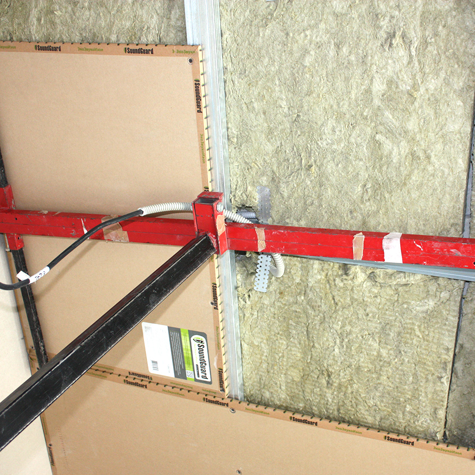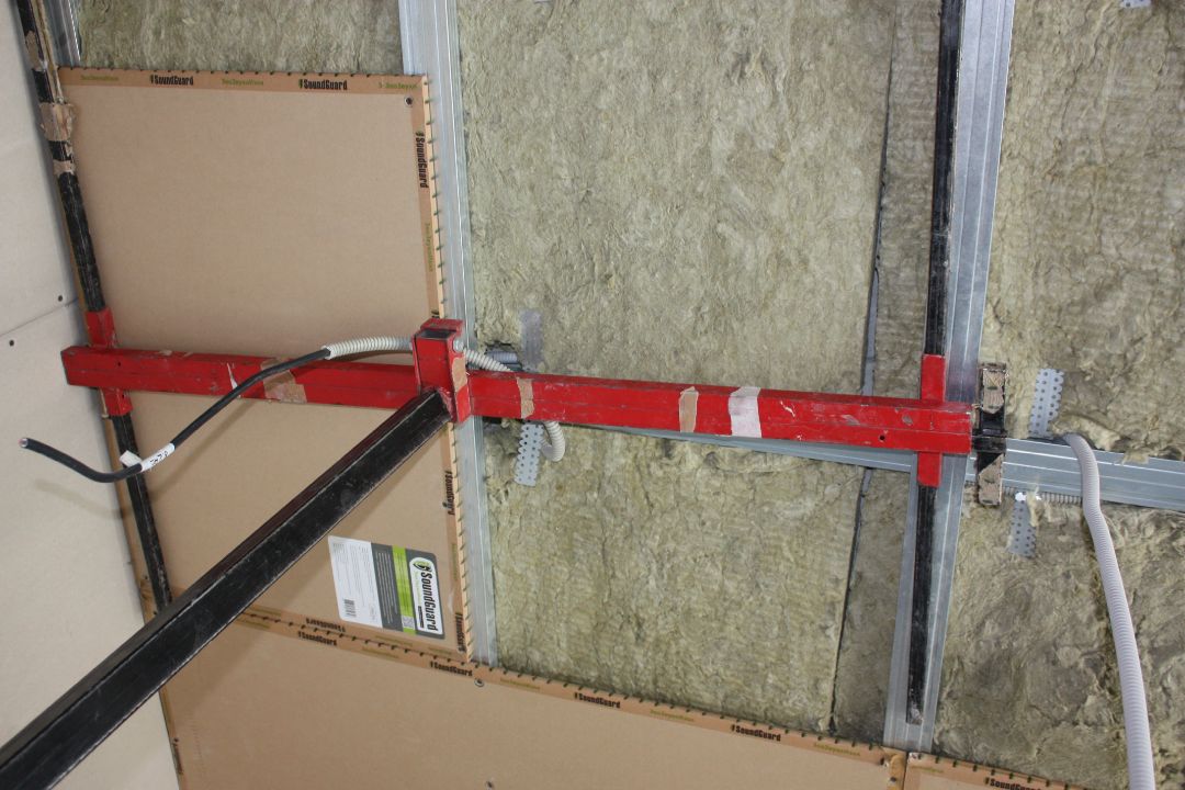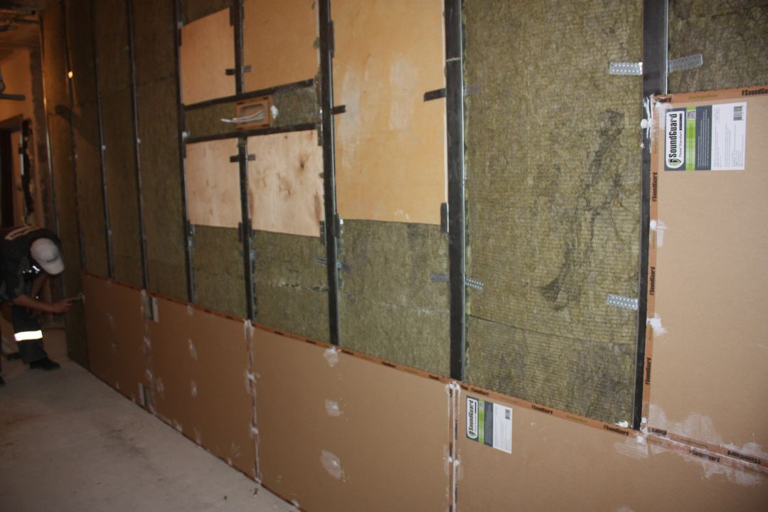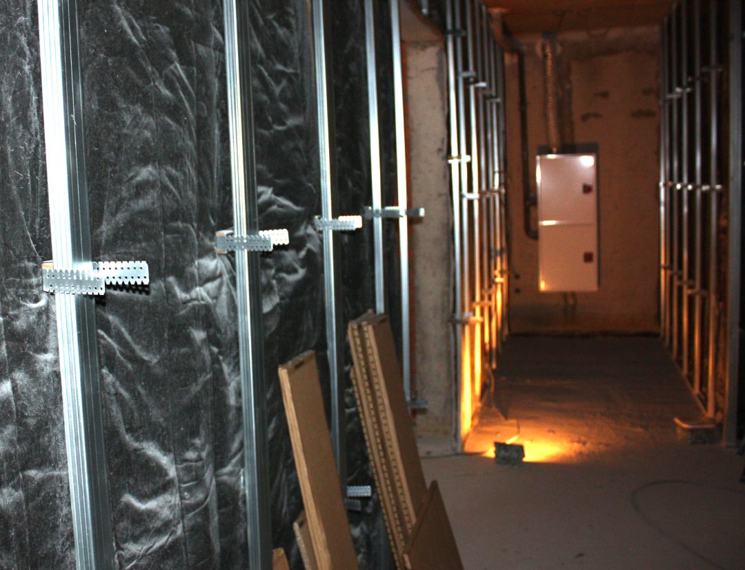 Звукоизоляция всех стен для защиты соседних помещений от ударного шума.