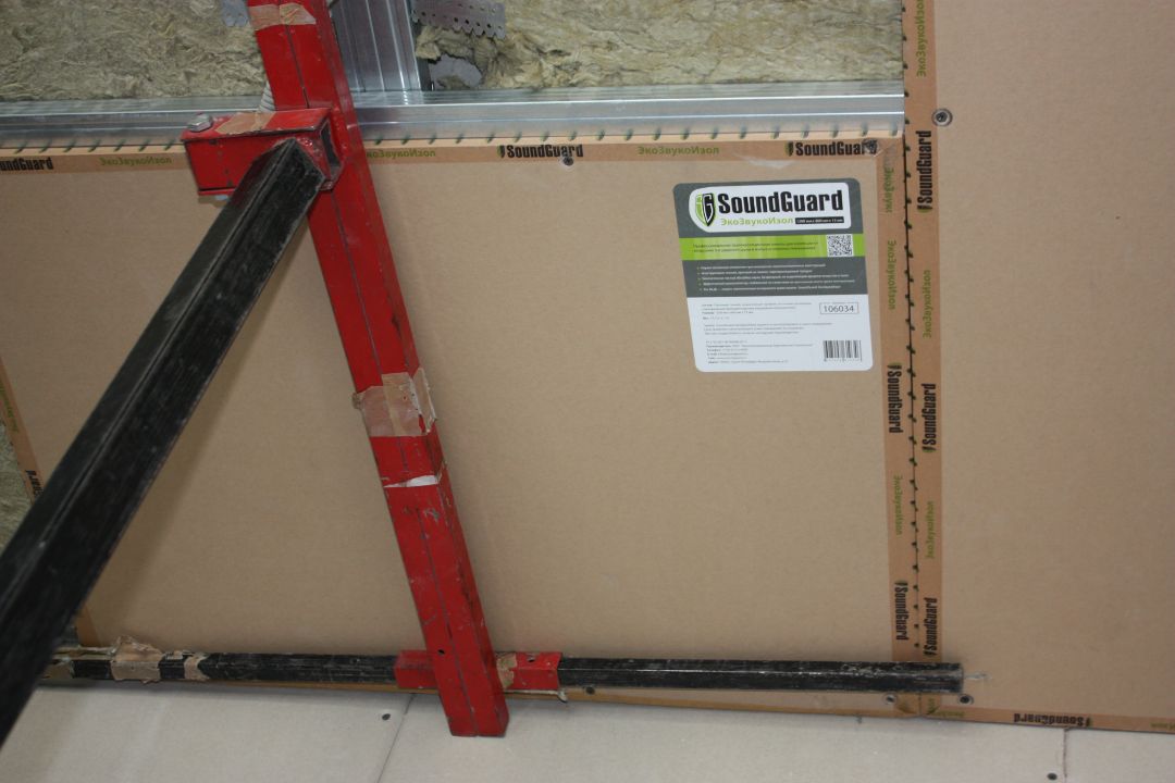 Выполнена комплексная звукоизоляция стен и потолка с помощью звукоизоляционного мата SoundGuard изоКОВЕР